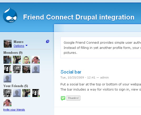 L'existence de Friend Connect sur Drupal et Joomla est une avancée, mais rien ne vous oblige à passer par ce service. Pour voir la démonstration de cette intégration sur Drupal et Joomla.