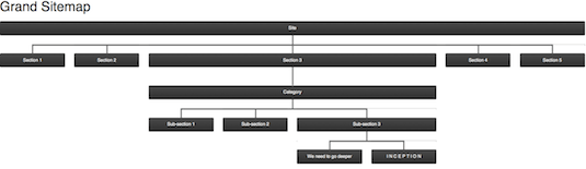 Bizarrement, je n'ai jamais vu une politique d'uniformisation de plan de site dans les agences que j'ai fréquenté. Je trouve ça étrange que des personnes dont le métier est de suivre des projets ne se soient jamais penchées sur les outils nécessaire à leur activité. Ma métaphore du chef de projet, guide de montagne/chef de cordée naviguant à vue (sans carte ni connaissance du terrain) prend toute son ampleur.