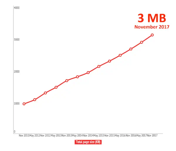 C’était sans compter sur les polices Web et les héros images (grande images d’entête) intégrées de manière amateure. Le poids moyen des sites augmente encore et encore jusqu’à atteindre celui d’un jeu comme Doom (2Mb).