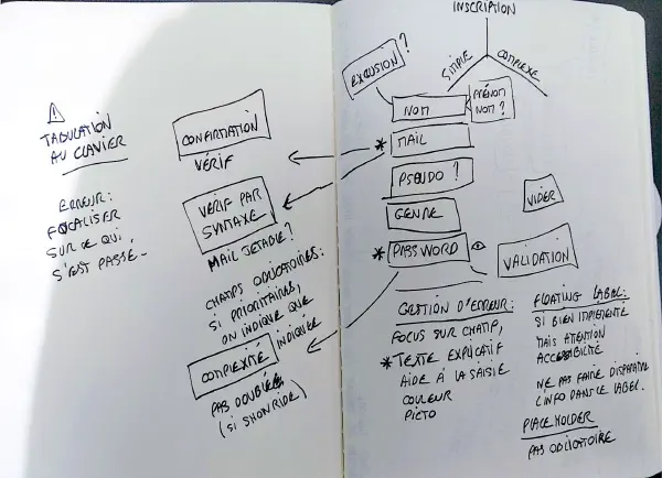 La première session a donc été l’occasion de faire des groupes qui ont réfléchit à la conception de formulaires de type : connexion, livraison, inscription… C’était vraiment très agréable de voir les personnes débattre avec autant d’idées en aussi peu de temps.